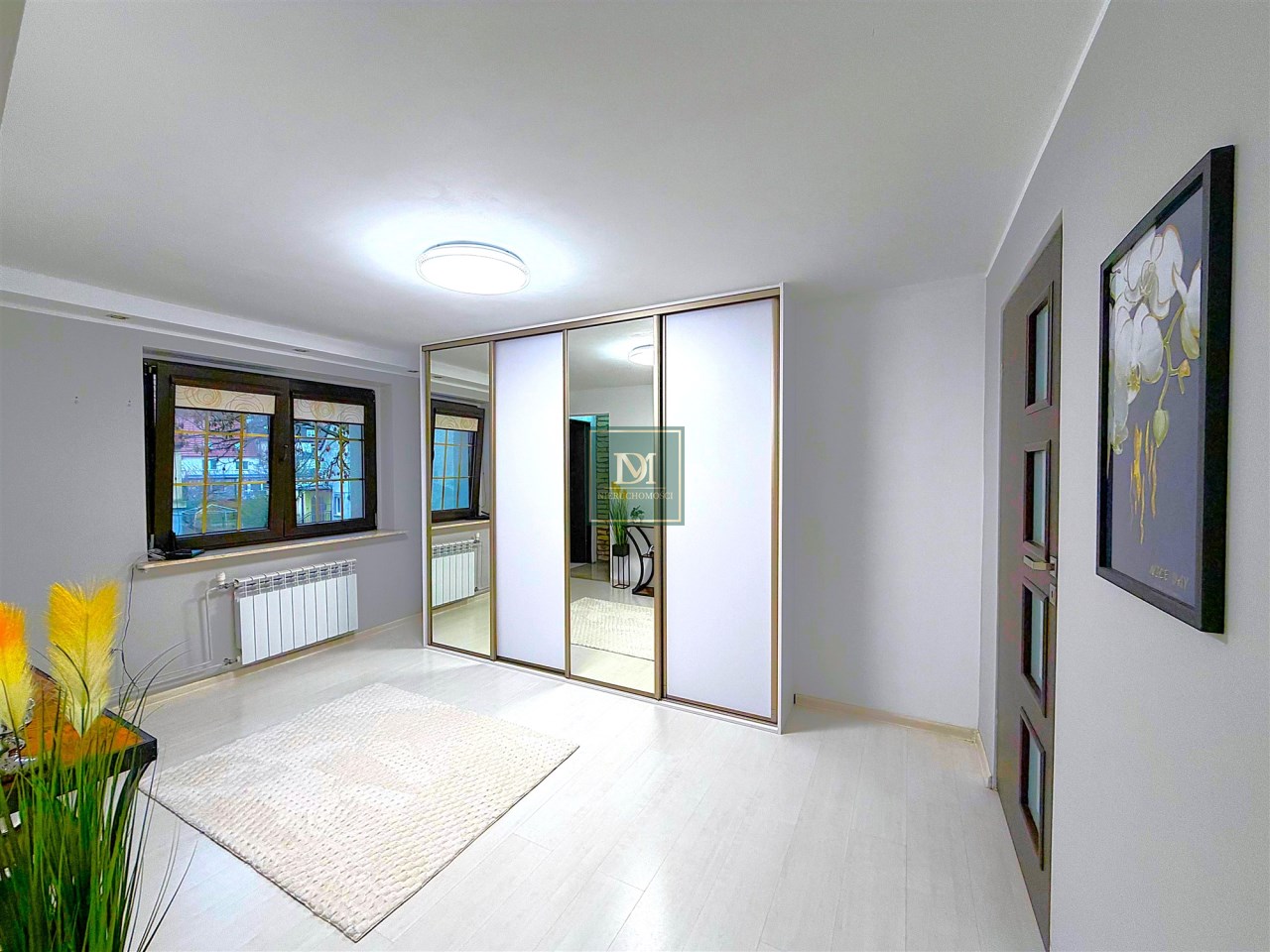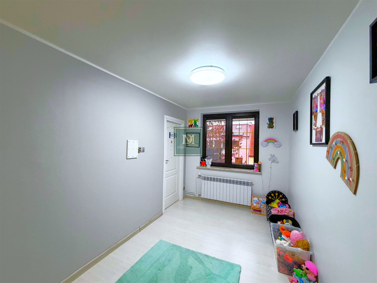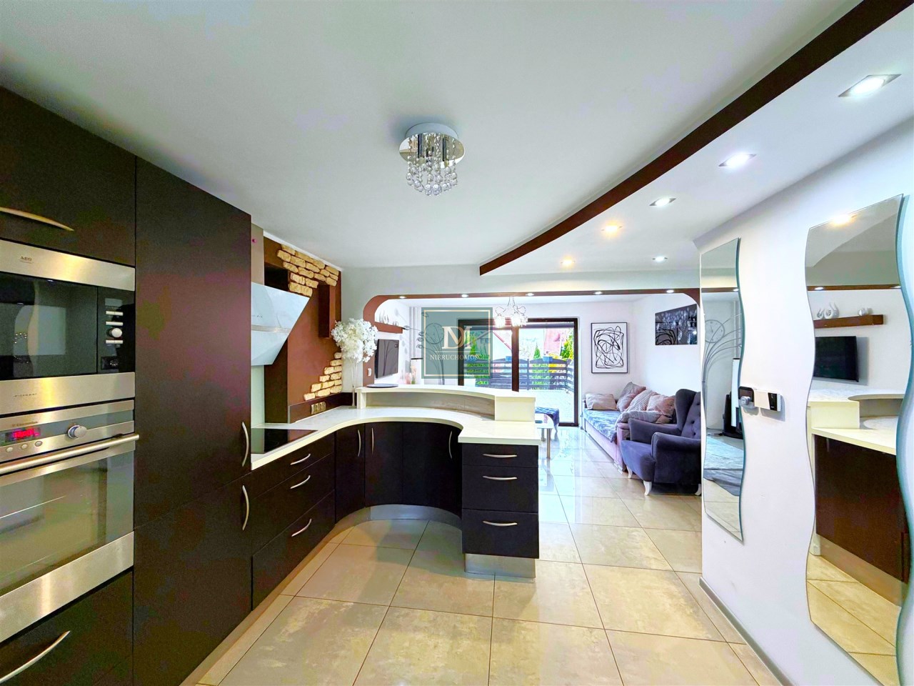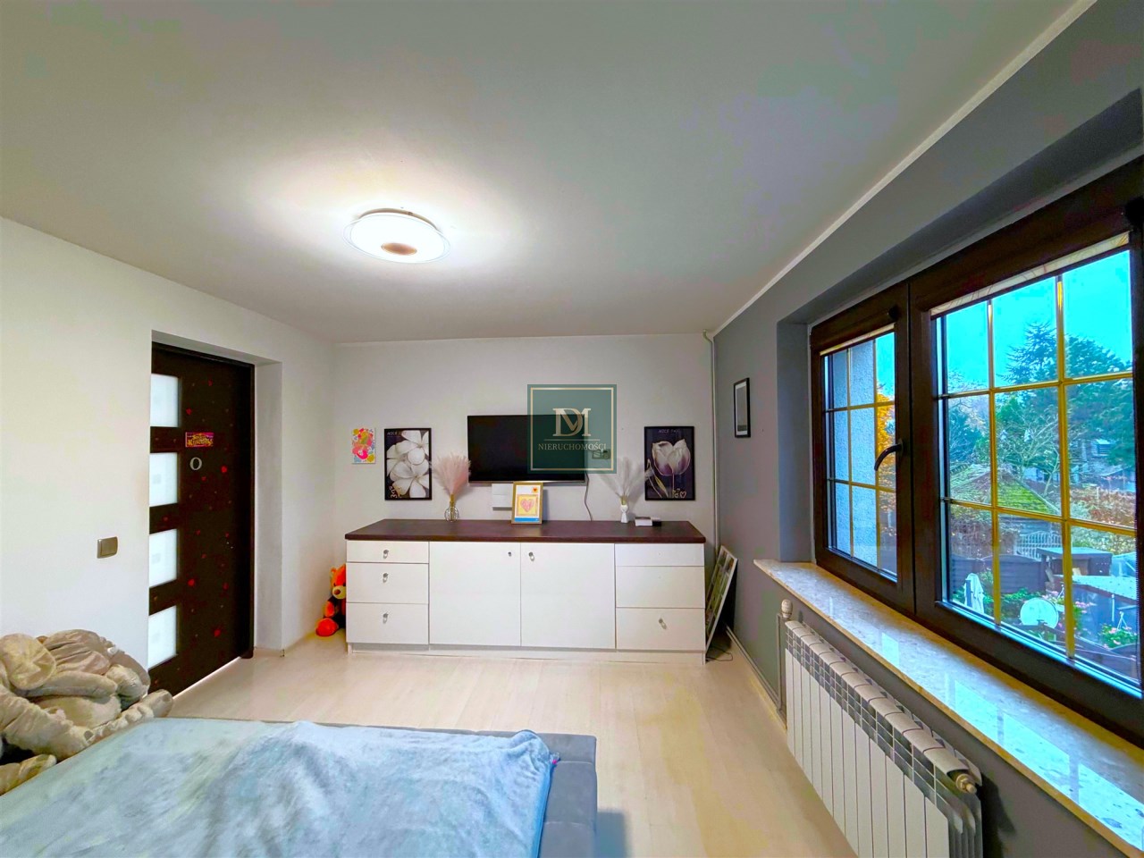 Z salonu wychodzimy na duży taras, gdzie w letnie wieczory będziesz mógł odpoczywać po dniu pracy, jest to idealne miejsce do relaksu, grillowania, oraz zabawy z dziećmi. Na piętrze zaś znajduję się dodatkowy balkon z widokiem na ogród, oraz niską zabudowę. Teren całej posesji jest całkowicie ogrodzony, zapewniając prywatność. Do dyspozycji nowego właściciela jest duży garaż (ok. 25m2) w bryle budynku oraz dodatkowe miejsca postojowe na terenie nieruchomości.