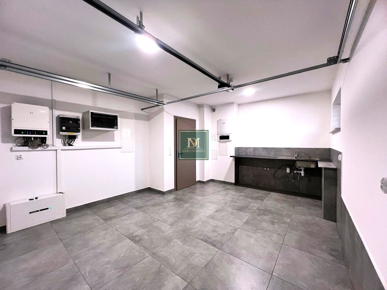 Garaż o powierzchni ok 27 m2 z automatyczną bramą oraz wydzieloną strefą na pralnię.
