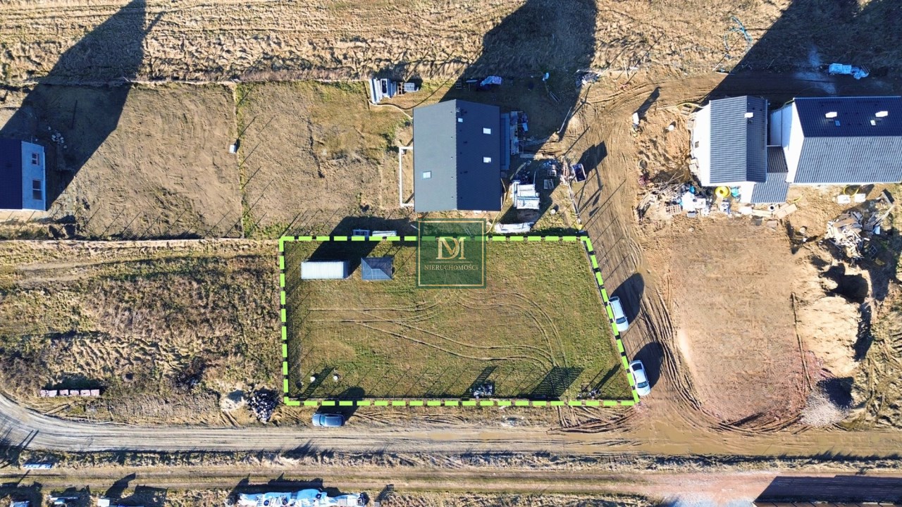 Dojazd do działki drogą gruntową. Sąsiednie działki zabudowane budynkami jednorodzinnymi.