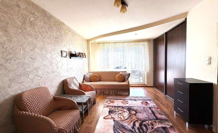 Mieszkanie składa się z dwóch przejściowych pokoi, WC, kuchni, małego przedpokoju, pomieszczenia, w którym może powstać łazienka, ale największym atutem nieruchomości jest świetna weranda, na którą wejdziemy z jednego z pokoi. To Ty możesz odmienić wystrój tego mieszkania. Do Nieruchomości przynależy piwnica i komórka lokatorska o łącznej powierzchni 12m2.