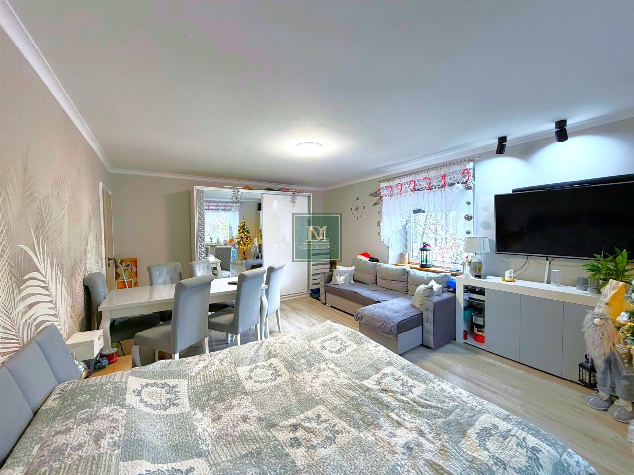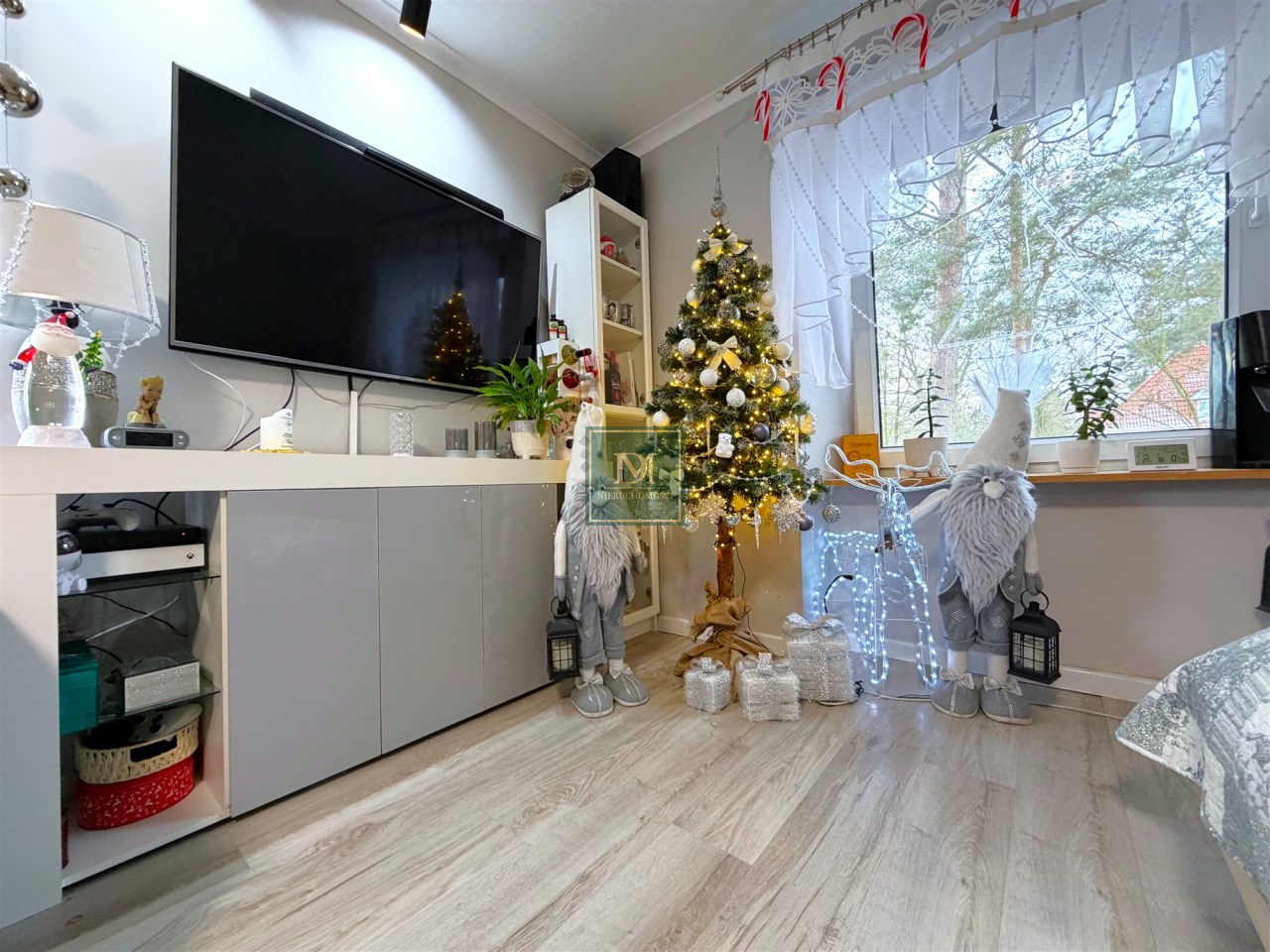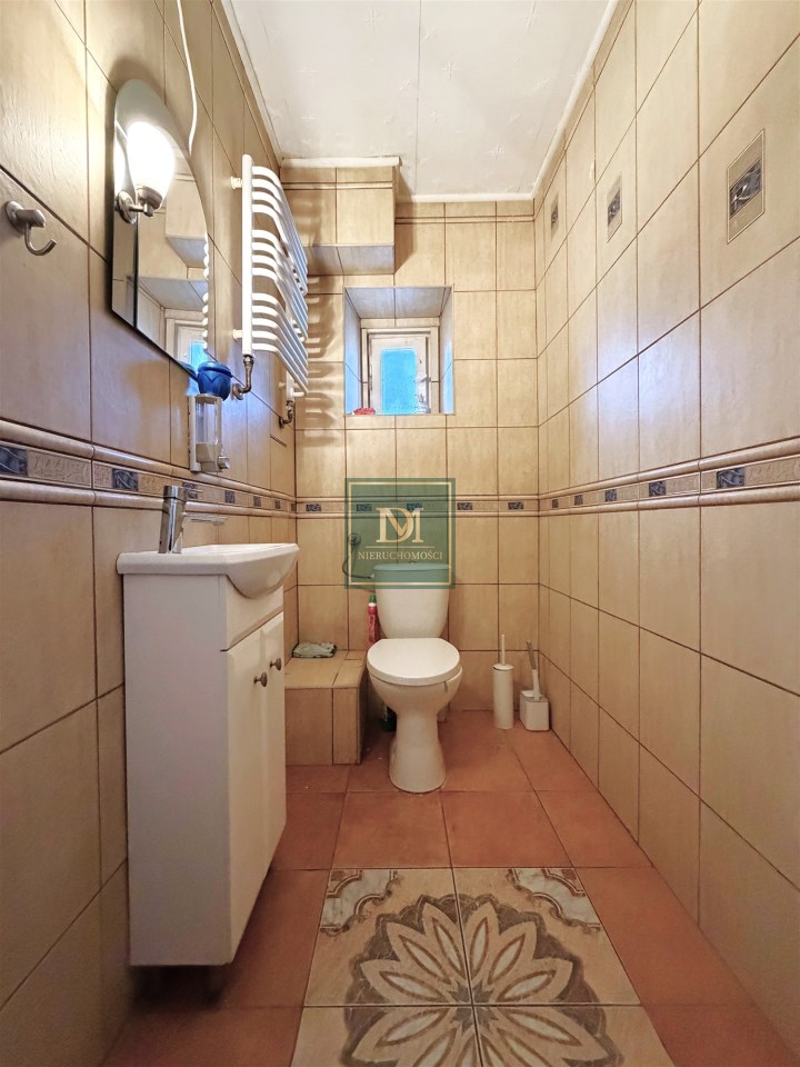 Mieszkanie składa się z 4 odrębnych pokoi, balkonu, przedpokoju, kuchni, łazienki z kabiną prysznicową oraz osobnego WC. Do lokalu przynależy pomieszczenie gospodarcze, oraz piwnica o łącznej powierzchni 39,8m2 . Przy domu znajduje się ogródek do wspólnego użytkowania, ale istnieje możliwość cesji dzierżawy ogródka znajdującego się nieopodal nieruchomości o powierzchni około 100m2 bezpośrednio użytkowanego tylko przez obecnych właścicieli.