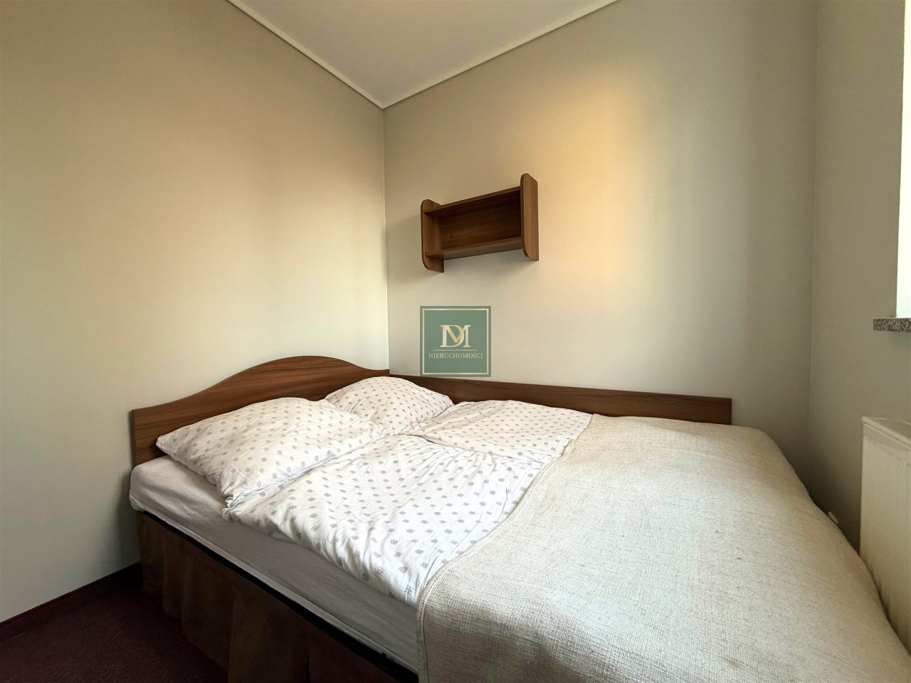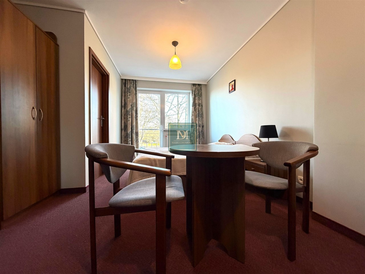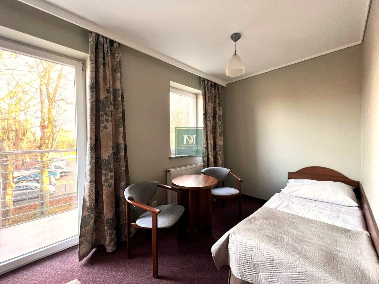 -pokój z łóżkiem sypialnianym oraz pojedynczym z wyjściem na balkon oraz łazienką. Wyposażony w sprzęt AGD, TV, zabudowę meblową oraz pościel i ręczniki.