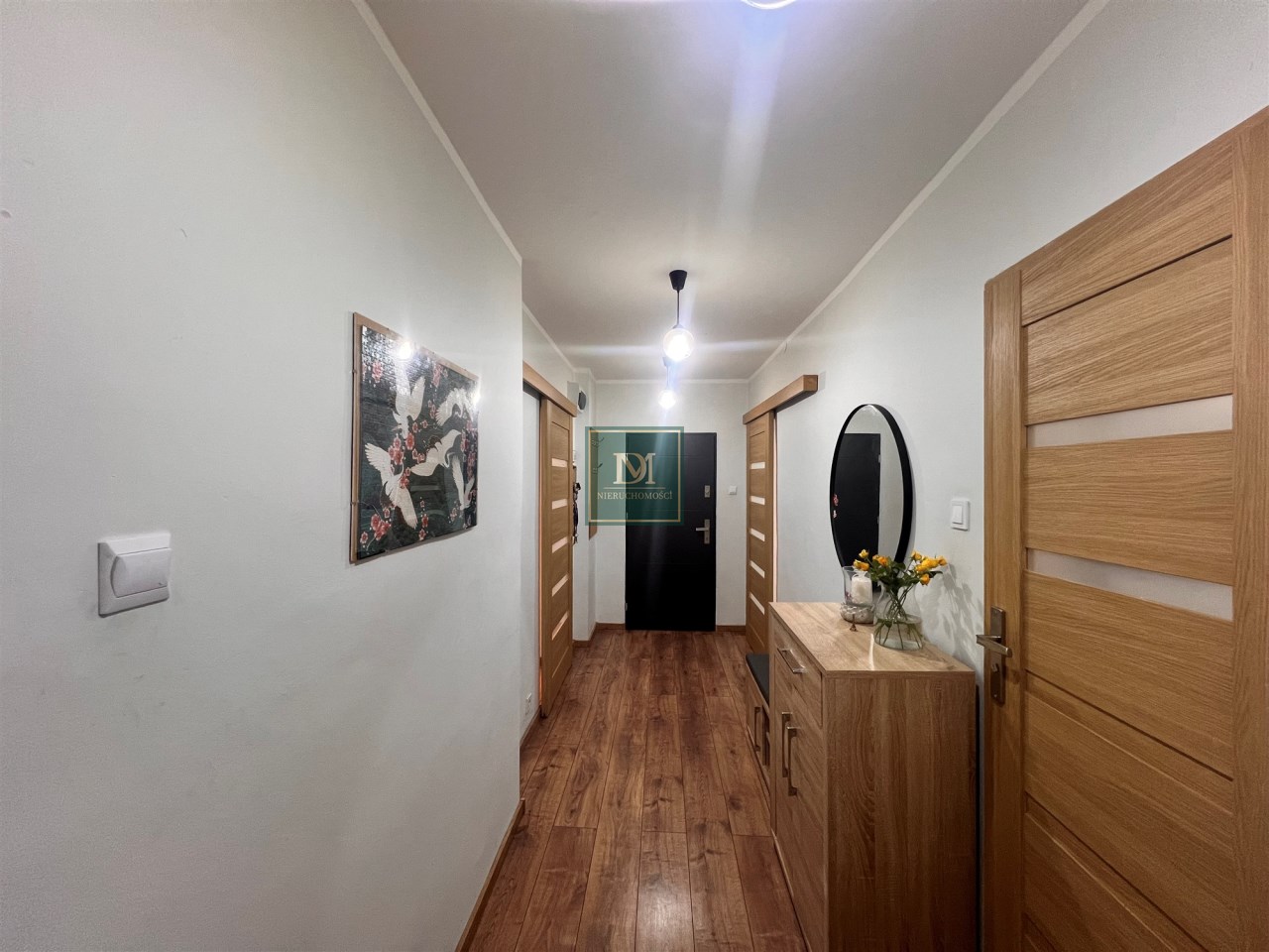 Mieszkanie składa się z dwóch pokoi, sypialni, salonu z aneksem kuchennym, przedpokoju a także łazienki z kabiną prysznicową wraz z WC. Do lokalu przynależy komórka lokatorska o powierzchni 14m2 oraz mały ogródek wzdłuż budynku, a także strych do wspólnego użytkowania.