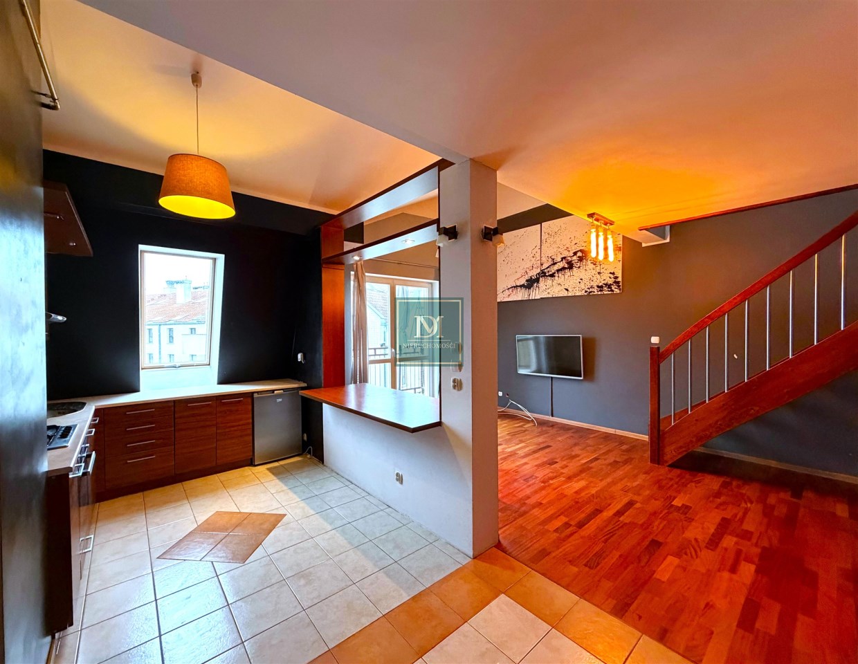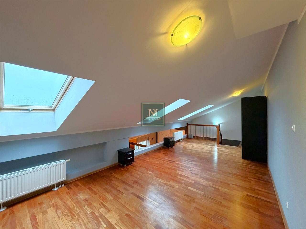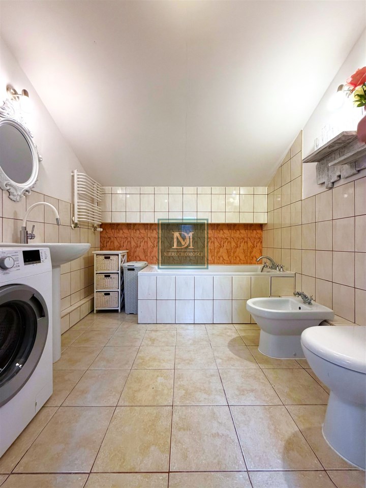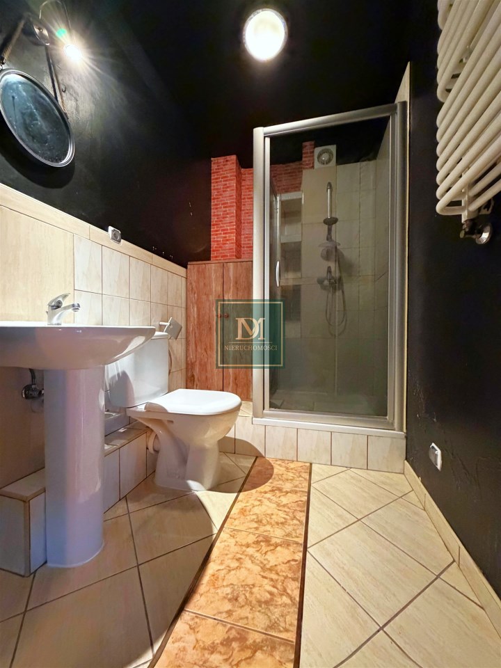 Lokal składa się z: holu, łazienki z kabiną prysznicową wraz z WC, otwartej widnej kuchni z oknem, sypialni, salonu z bezpośrednim wyjściem na balkon, który daje nam możliwość podziwiania stawu wodnego. Na piętro udamy się drewnianymi schodami, a tam znajduję się antresola do własnej aranżacji, która w tym momencie pełni funkcję jednego dużego pokoju z aneksem kuchennym oraz kolejną łazienką, w której z kolei znajduję się wanna, pralka oraz toaleta. Jest to idealne rozwiązanie z racji dwóch niezależnych łazienek.