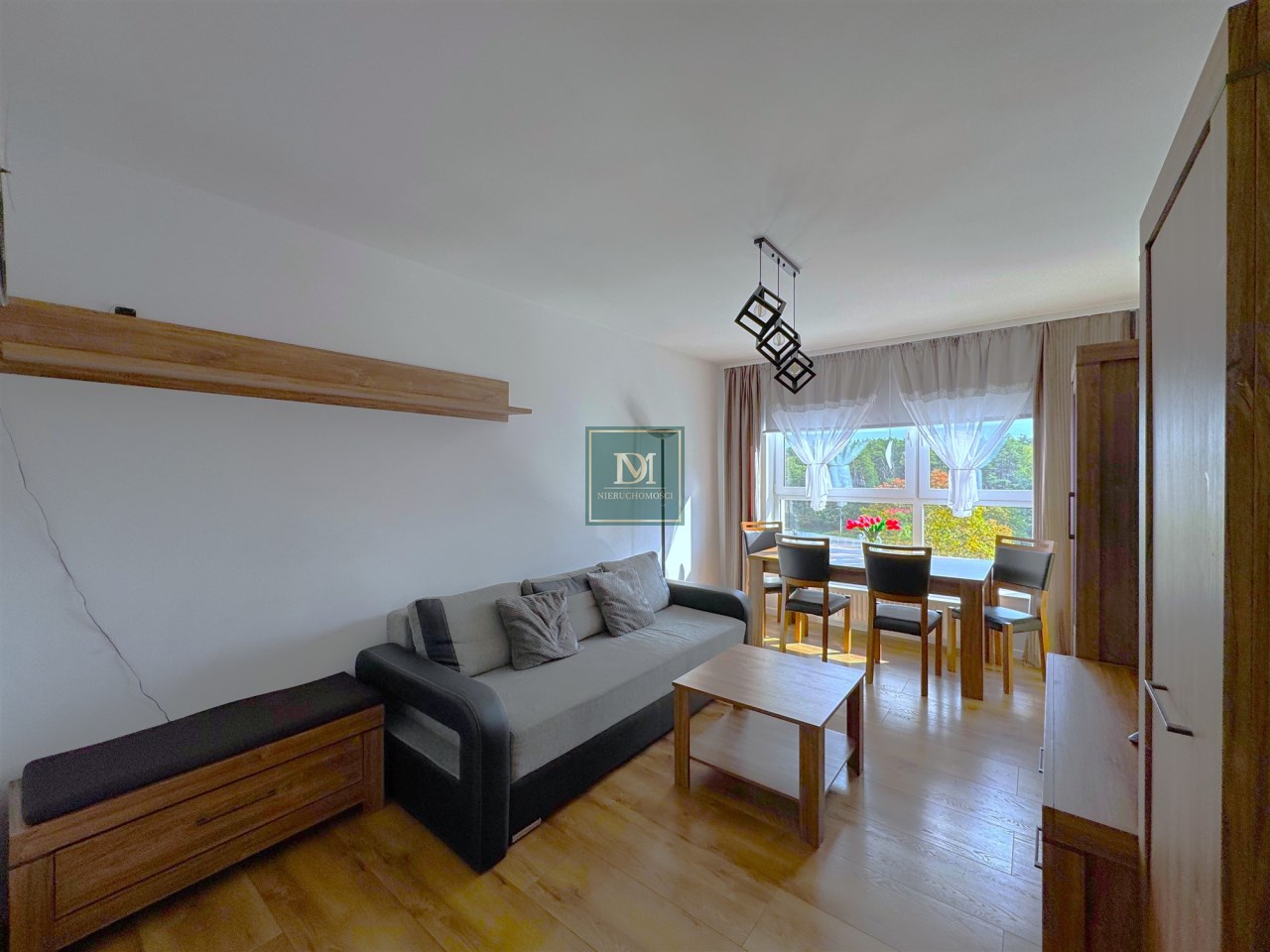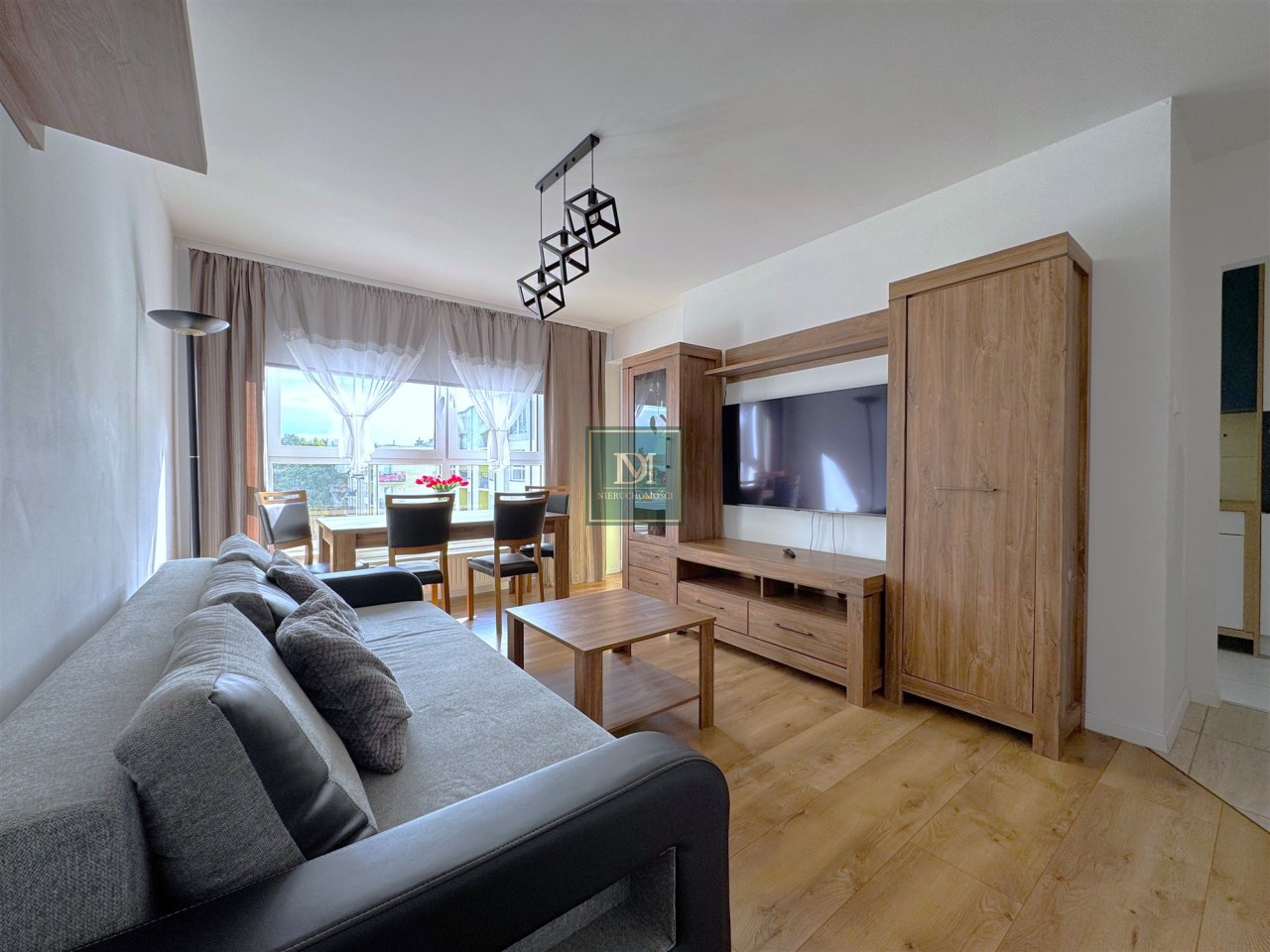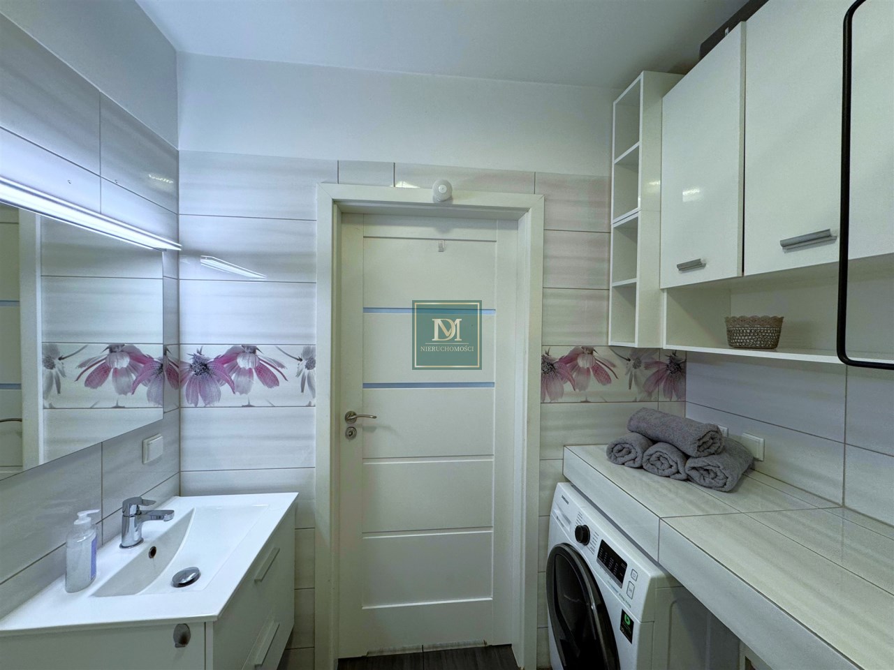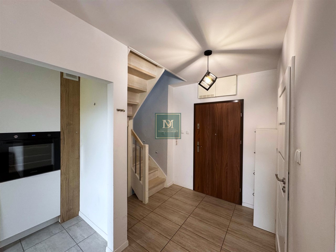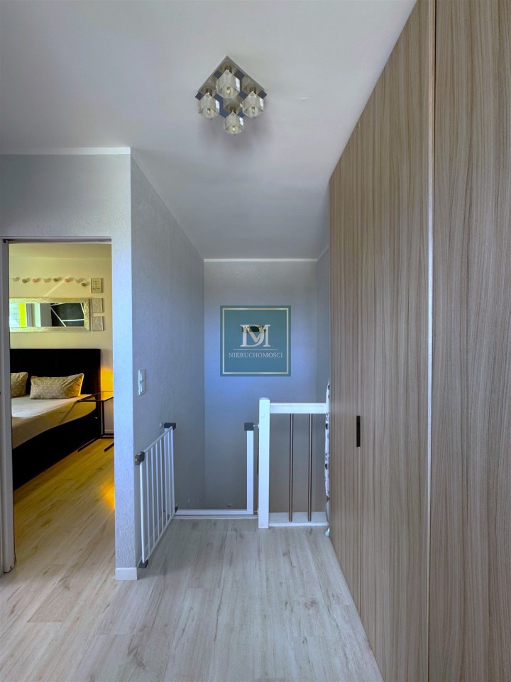 Pierwszy poziom nieruchomości składa się z funkcjonalnej w pełni wyposażonej w sprzęty AGD widnej kuchni z oknem, salonu z bezpośrednim wyjściem na pierwszy z dwóch balkonów, łazienki z wanną oraz WC. Na piętrze, na które prowadzą nas drewniane schody, znajduje się antresola zaadoptowana na dwa oddzielne pokoje, drugi z balkonów oraz hol z szafą w zabudowie.
