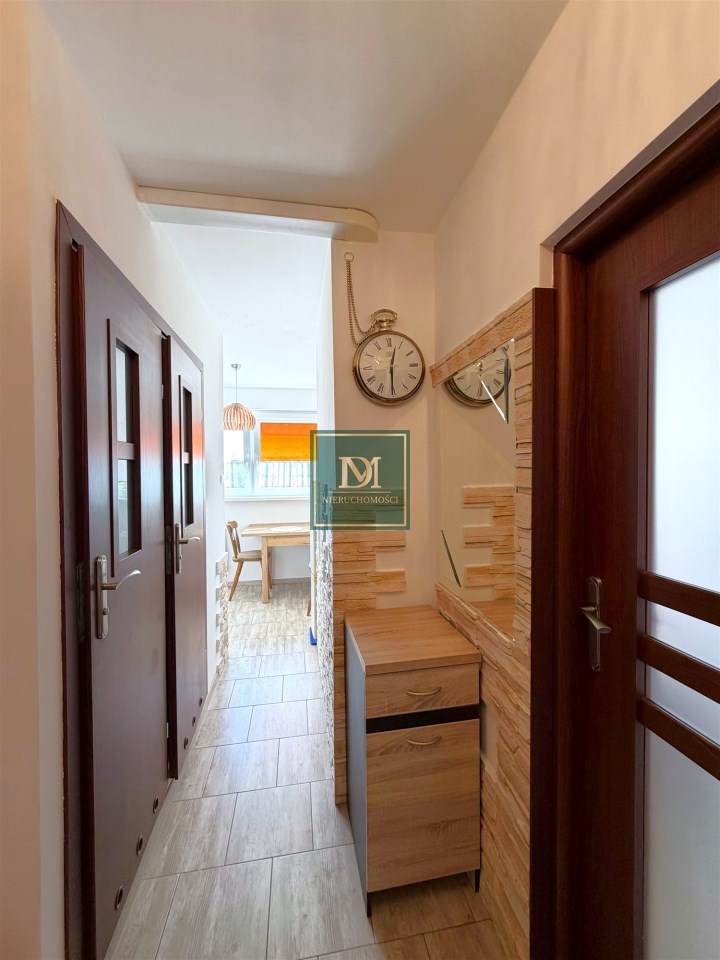 Mieszkanie składa się z salonu, przedpokoju, osobnej widnej kuchni z oknem, łazienki z kabiną prysznicową oraz osobnej toalety.
