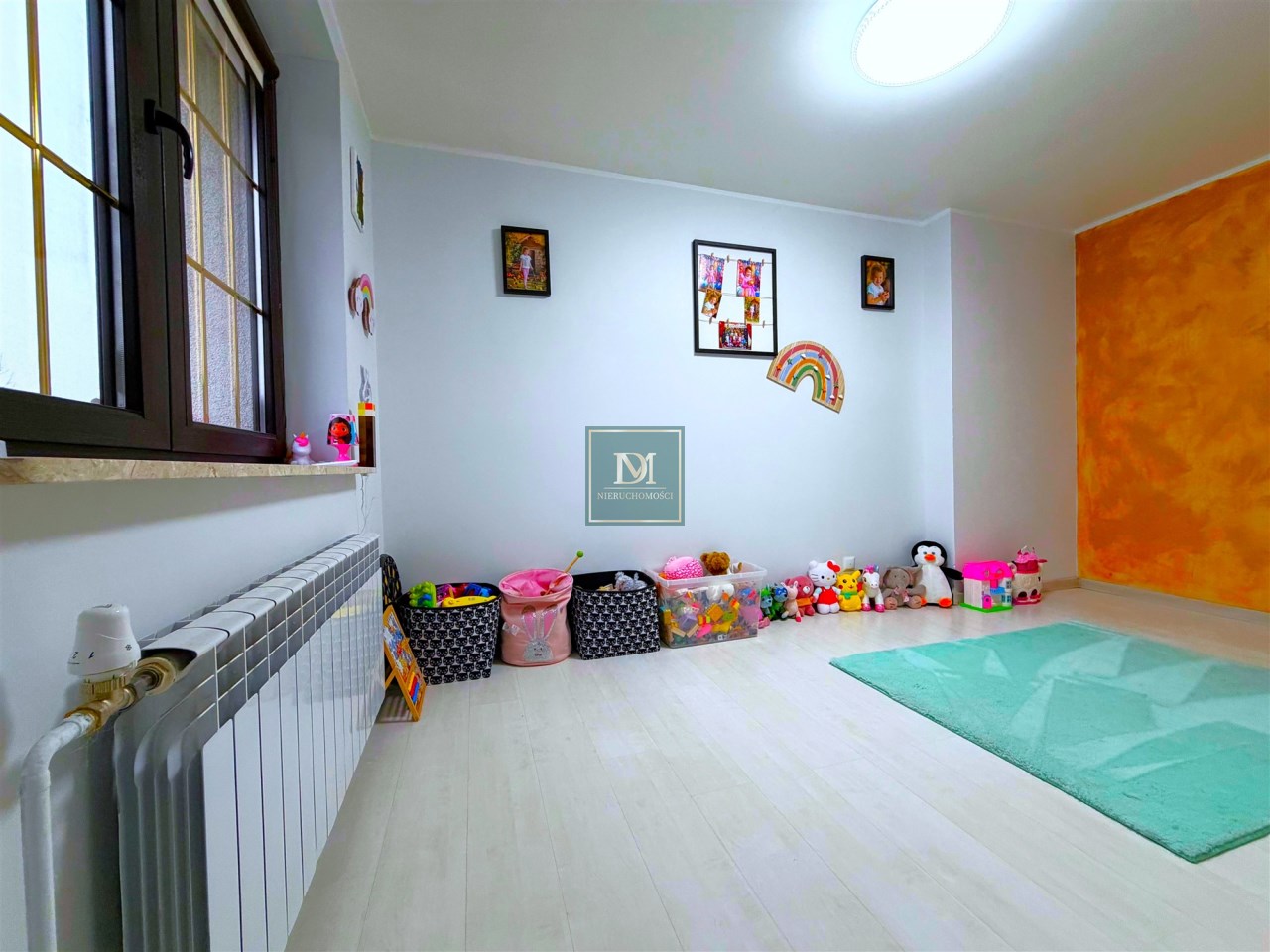 Z salonu wychodzimy na duży taras, gdzie w letnie wieczory będziesz mógł odpoczywać po dniu pracy, jest to idealne miejsce do relaksu, grillowania, oraz zabawy z dziećmi. Na piętrze zaś znajduję się dodatkowy balkon z widokiem na ogród, oraz niską zabudowę. Teren całej posesji jest całkowicie ogrodzony, zapewniając prywatność. Do dyspozycji nowego właściciela jest duży garaż (ok. 25m2) w bryle budynku oraz dodatkowe miejsca postojowe na terenie nieruchomości.