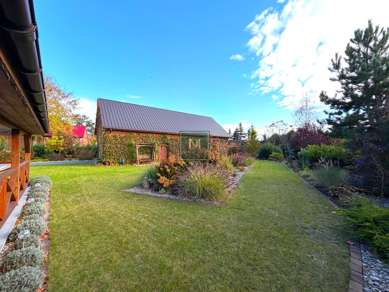 Działka w pełni zagospodarowana - liczne nasadzenia, trawnik, żywopłot zapewniający prywatność i zadbane alejki. Okolica jest spokojna pełna zieleni z przyjaznym sąsiedztwem i niską zabudową.