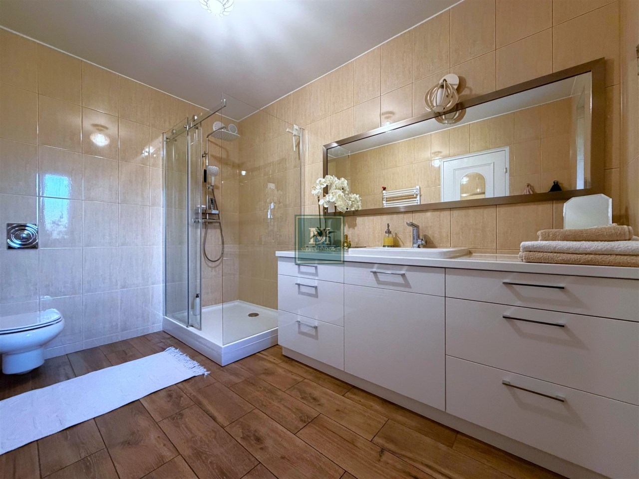 - jasna łazienka z kabiną prysznicową i WC