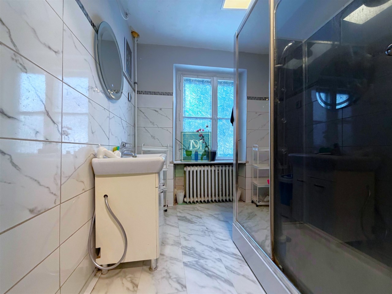 Mieszkanie składa się z 4 odrębnych pokoi, balkonu, przedpokoju, kuchni, łazienki z kabiną prysznicową oraz osobnego WC. Do lokalu przynależy pomieszczenie gospodarcze, oraz piwnica o łącznej powierzchni 39,8m2 . Przy domu znajduje się ogródek do wspólnego użytkowania, ale istnieje możliwość cesji dzierżawy ogródka znajdującego się nieopodal nieruchomości o powierzchni około 100m2 bezpośrednio użytkowanego tylko przez obecnych właścicieli.