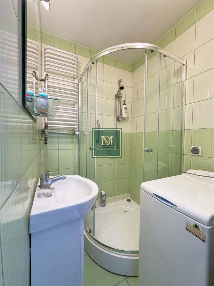 Mieszkanie składa się z salonu, przedpokoju, osobnej widnej kuchni z oknem, łazienki z kabiną prysznicową oraz osobnej toalety.